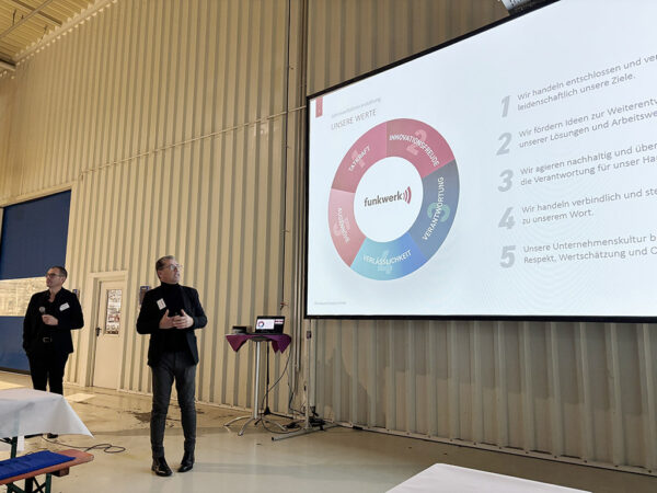 Die Veranstaltung begann mit der Präsentation unserer strategischen Roadmap bis 2030. Die Führungsebene stellte die langfristigen Unternehmensziele vor und zeigte auf, wie sich Funkwerk Systems in den kommenden Jahren weiterentwickeln wird. Dabei machten sie auch die spezifischen Ziele der einzelnen Abteilungen transparent – von der Produktentwicklung über die Fertigung bis hin zum Vertrieb.